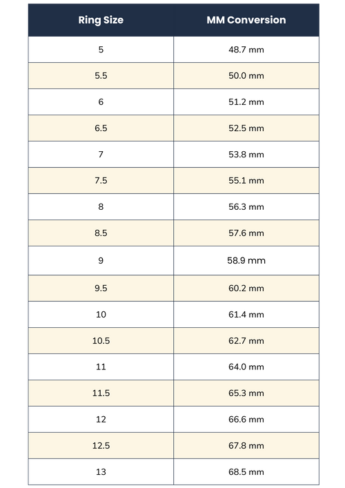 Ring Sizing Conversion Chart