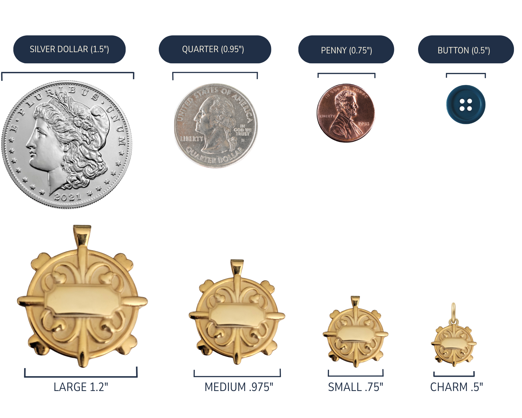 - Locate one of the coins or objects in the image below that emulates the four EJ amulet sizes.